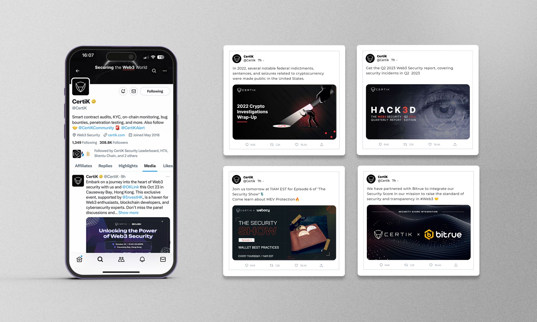 CertiK, a leading blockchain security company, embarked on a branding identity project to redefine and strengthen its visual identity in the competitive blockchain technology market. The project aimed to communicate CertiK’s core values, expertise, and commitment to security to its diverse audience, including clients, partners, and investors.