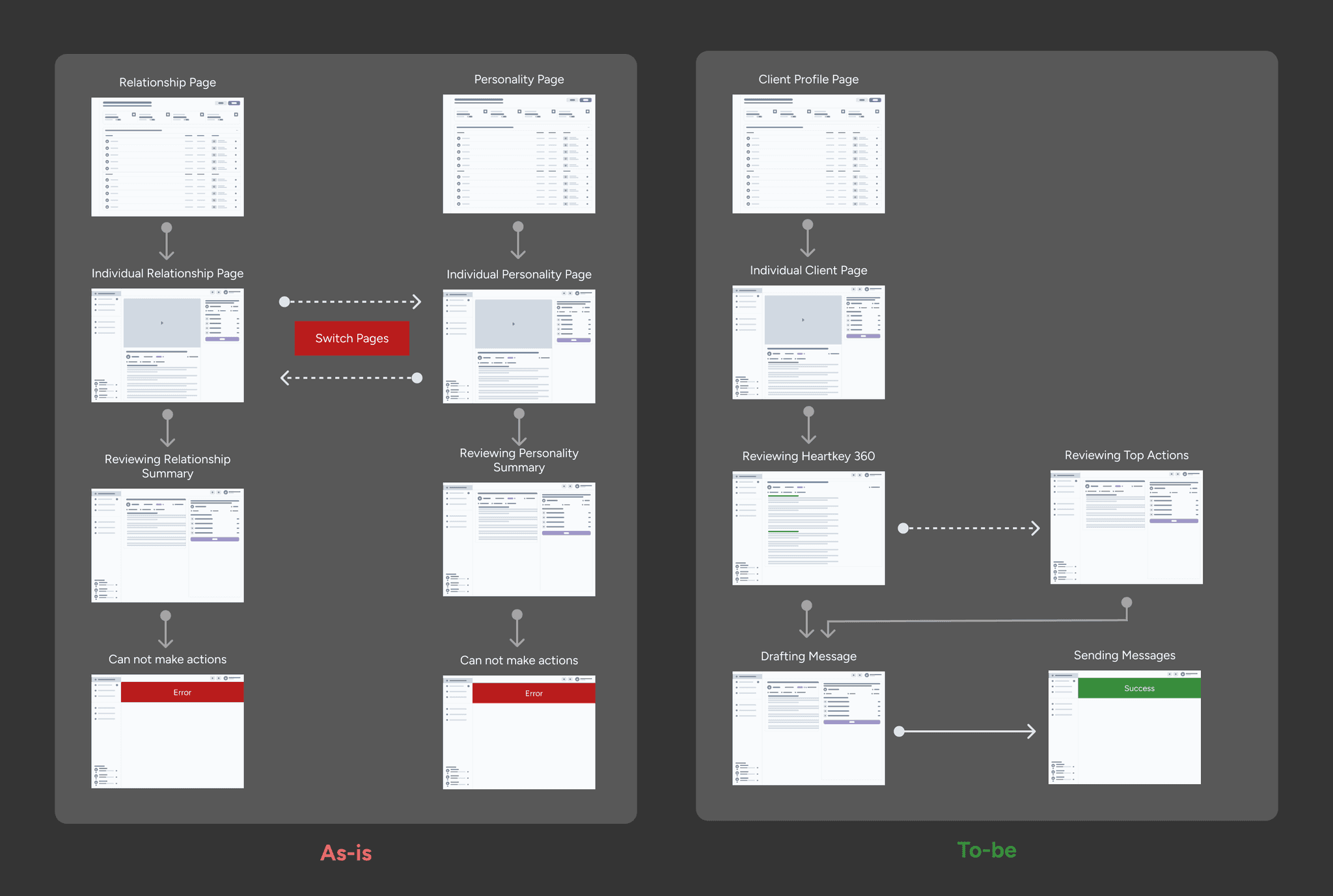 We consolidated these layers into a single Client Profile Page, anchored by the HeartKey 360 model. This allowed insight, interpretation, and action to exist within one continuous flow.