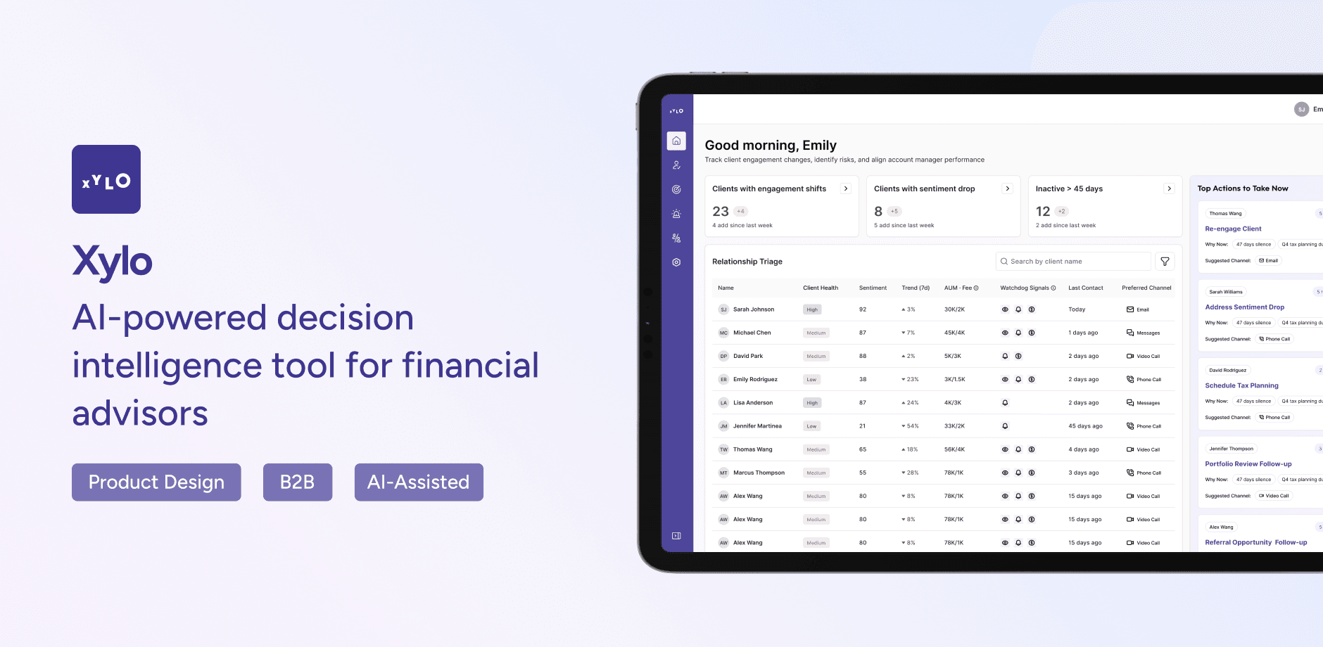 Xylo is an AI-powered decision intelligence software that helps financial advisors identify relationship risks and opportunities in real time.