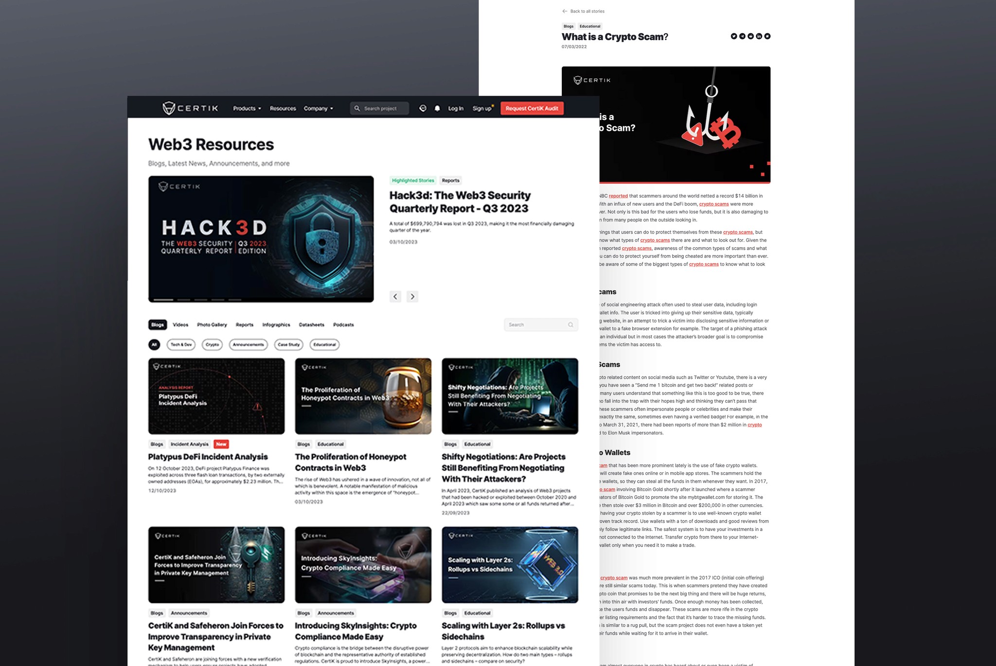 I conducted extensive research, analyzing leading security websites in Web3 industries. Through stakeholder interviews and discussions with marketing and design experts, I gained insights into Certik’s operational goals and branding vision. Collaborating with designers and security specialists, I explored diverse visual metaphors for security.